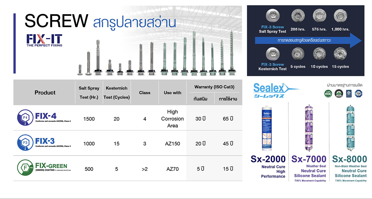 หลังคายึดแบบสกรู หลังคาแบบขายึด หลังคาย่ำโค้ง หลังคาติดฉนวนพียู หลังคาโปร่งแสง ผนัง / ฝ้า บานเกล็ดระบายอากาศและสกรู แผ่นปิดครอบมาตรฐานและลูกหมุนระบายอากาศ ฉนวนกันความร้อน แปสำเร็จรูป CEE & ZED PURLIN