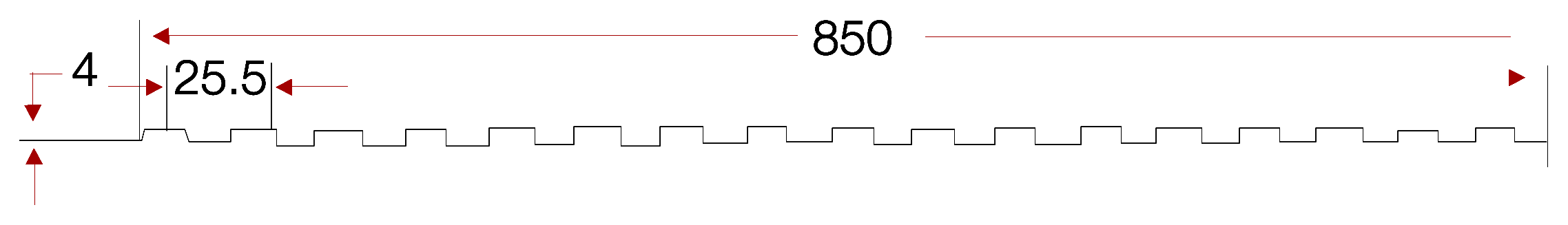 • ความกว้างของลอนหลังคาหลังจากหักระยะซ้อนทับแล้ว ไม่เกิน 850 มม.
